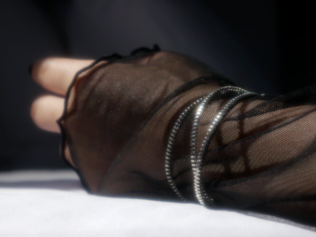 3つのジッパーがメビウスの輪の様に複雑に絡み合ったデザインは、2つのスライダーを動かすことにより様々な形に変形することができます。
